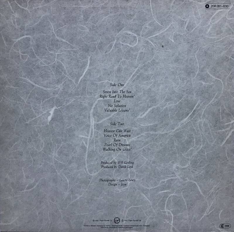 SIDE B: 01. Heaven Can Wait (3:58) / Voice Of America (4:13) / Rain (5:10) / Pearl Of Dreams (3:45) / Walking On Glass (4:18) / Vaudeville (4:50)